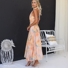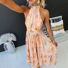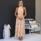 كاتيا | فستان طويل بوهيمي – ياقة هالتر ونقشة زهور أنيقة