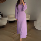 هذه الفستان الطويل ذو الأكمام الطويلة يوفر شكلًا أنثويًا وجذابًا. متوفر بعدة ألوان، يتناسب مع جميع المناسبات. تصميمه الخالد يضمن أناقة بلا جهد.