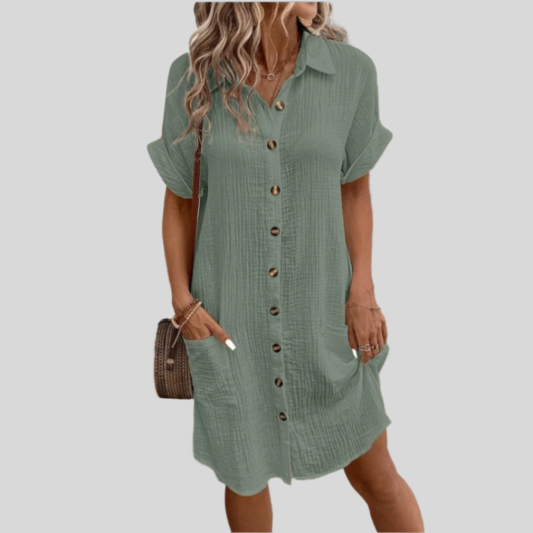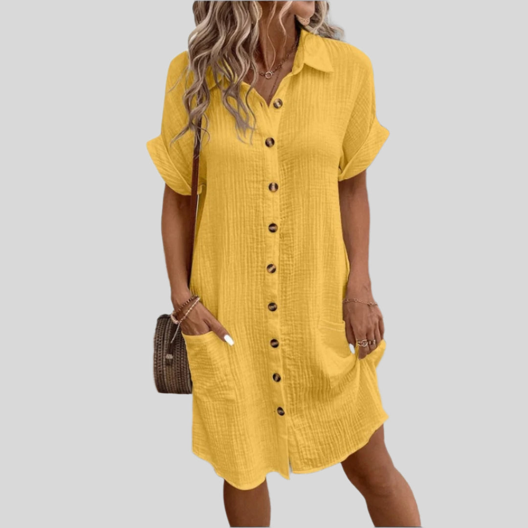 تقدم هذه الفستان القميص المزود بأزرار قصة واسعة ومريحة. متوفر بعدة ألوان، يتناسب مع جميع المناسبات. تصميمه الخالد يجعله قطعة أساسية في خزانة ملابسك.