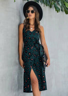 هذا الفستان الطويل البوهيمي الداكن يوفر قوامًا سلسًا ومريحًا. نمط الفهد الأسود ووردي يضيف لمسة من الأصالة.
