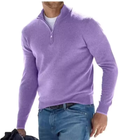 Zacharie | Pulóver s polovičným zipsom pre mužov — S vysokým golierom a dlhými rukávmi
