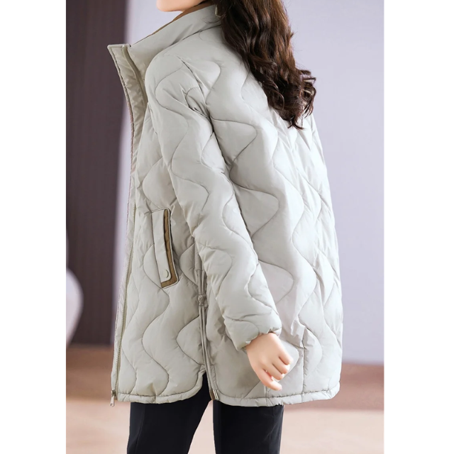 Tento model spojuje pohodlí a rafinovanost, aby čelil chladnému období se stylem. Jeho moderní střih a vysoký límec zajišťují elegantní vzhled a zároveň účinně chrání před větrem. Lehká, ale teplá, tato bunda se stává nezbytností zimního šatníku, praktická i estetická.