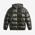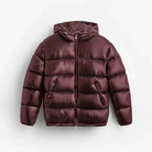 Tato krátká bunda zvýrazňuje lesklou texturu, která okamžitě dodává moderní styl. Její objemový střih a široké reliéfní panely dodávají strukturovaný vzhled, ideální pro chladné dny. Integrovaná kapuce a zip po celé délce ji činí praktickým kouskem na každodenní nošení.