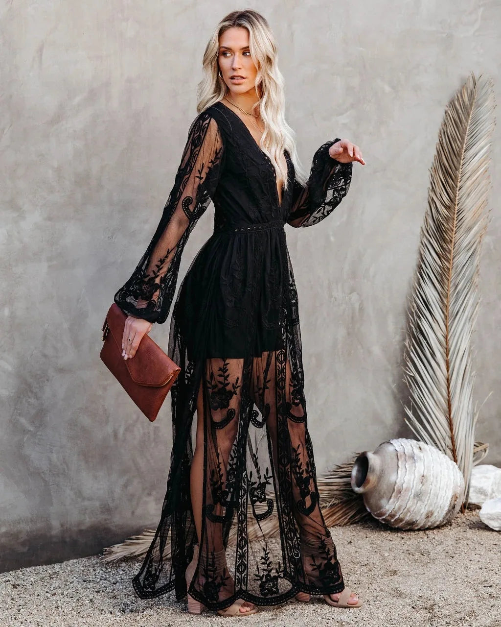 HVORFOR VÆLGE DEN LANGE SORTE BRODEREDE KJOLE MED EN SLANK OG MODERNE SILHUET?