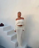 Αυτή η κομψή συλλογή συνδυάζει ένα τοπ με γυμνά ώμους και μια ταιριαστή φούστα σε υφή υφάσματος με εκλεπτυσμένο αποτέλεσμα. Η γραμμή της αναδεικνύει τη σιλουέτα ενώ εξασφαλίζει μεγάλη άνεση. Ιδανική για επίσημες εξόδους ή ειδικές περιστάσεις.