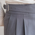 Tämä korkeavyötäröinen housu edustaa täydellistä tasapainoa klassisen tyylin ja modernin välillä. Sen kapeahko leikkaus, jossa on laskokset, korostaa siluettia samalla kun se takaa optimaalisen mukavuuden. Integroitu sivuhihna tuo hienostuneen kosketuksen, joka on ihanteellinen tyylikkäälle ilmeelle kaikissa tilanteissa.