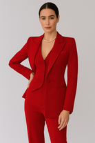 構造的なブレザー、洗練されたベスト、フィットしたパンツで構成されるこのセットは、シックでプロフェッショナルな印象を与えます。オフィス、正式な会議、またはフォーマルなイベントに最適で、季節を通じてスタイルと快適さを兼ね備えています。