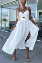 このミディドレスは、フィット感のあるカットと洗練されたネックラインでシルエットを引き立てます。複数の色で利用可能で、特別な occasion でも日常の瞬間でも適しています。高品質な生地は、快適さと耐久性を保証し、手入れも簡単です。