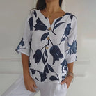 Jeanne | Bluză Florală Elegantă – Închidere Centrală și Mâneci Scurte