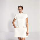 Denna korta klänning har en figurnära passform som framhäver silhuetten med elegans. Dess fint dekorerade fickor ger en subtil touch av raffinemang, perfekt för en chic och modern look.